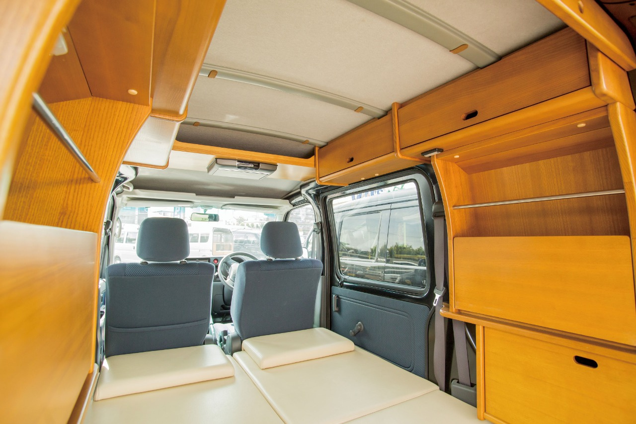 ベッドマットなども車種に合わせてミリ単位で調整されており、職人の技術が随所に見られます。